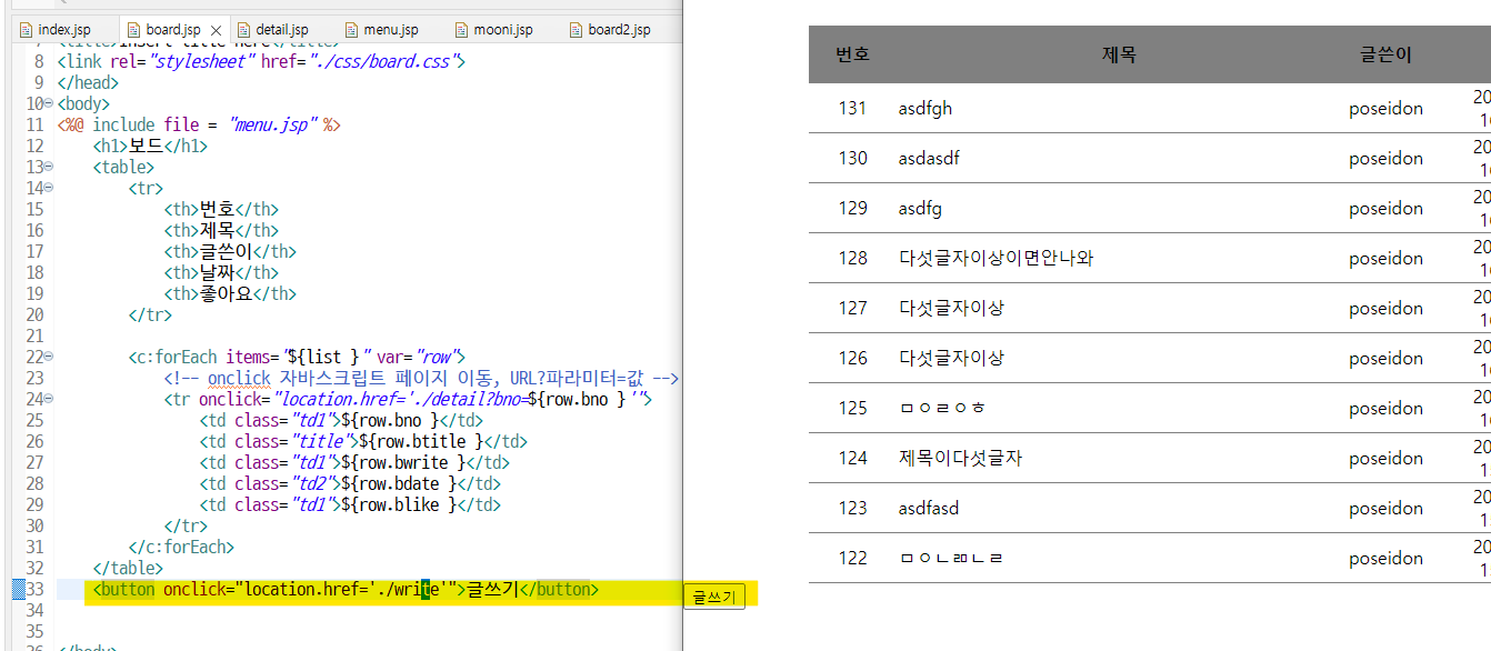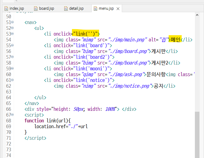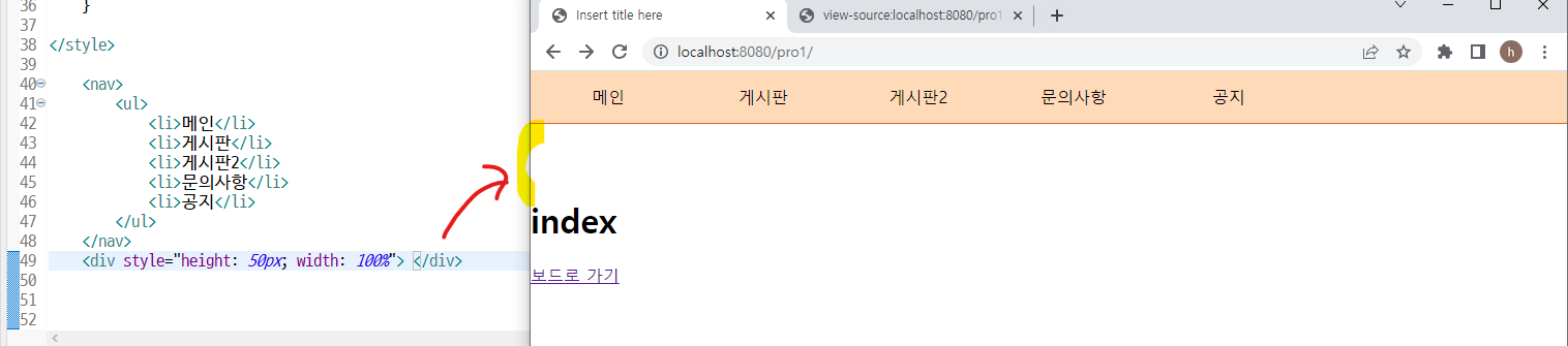 이제 index랑 board 왔다갔다 하는 a링크는 삭제해도됨 _ 메뉴바로 이동가능하니까~