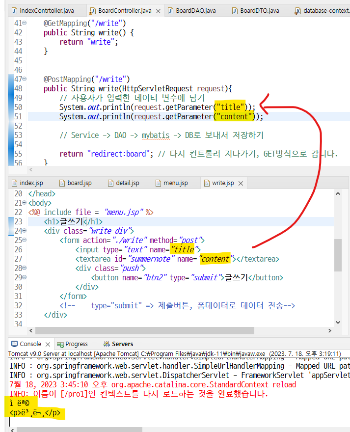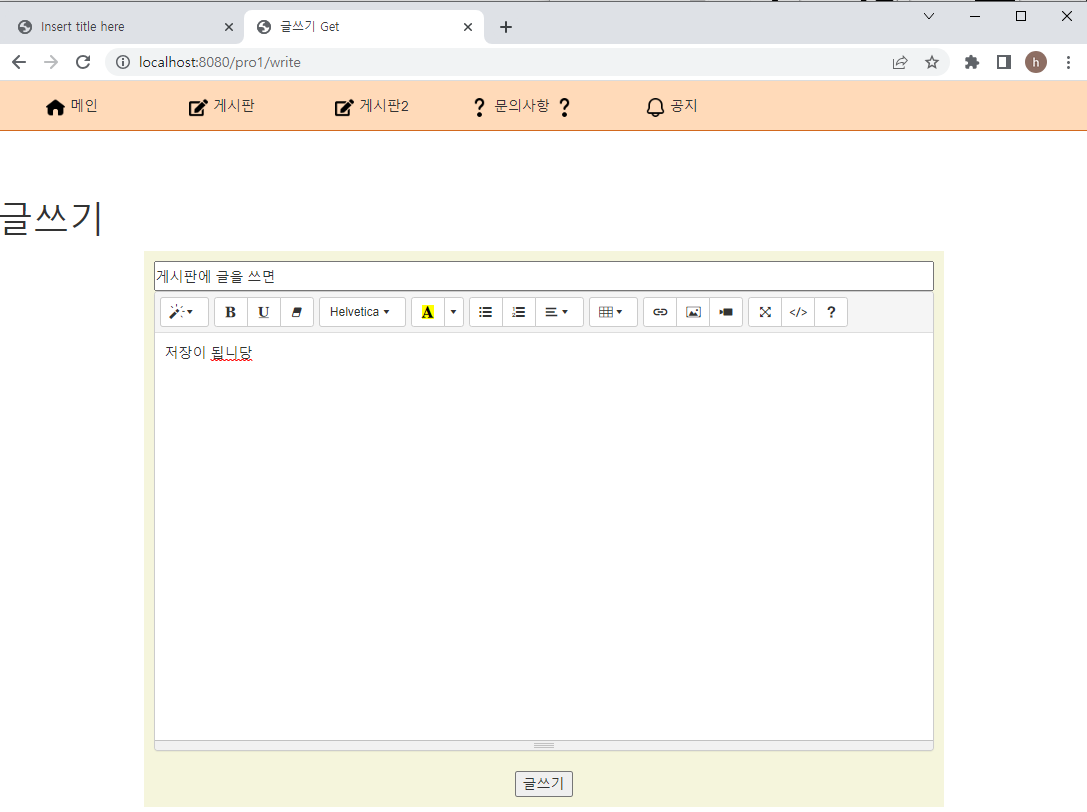 게시판에서 제목 & 본문 입력하고 글쓰기 버튼 누르면