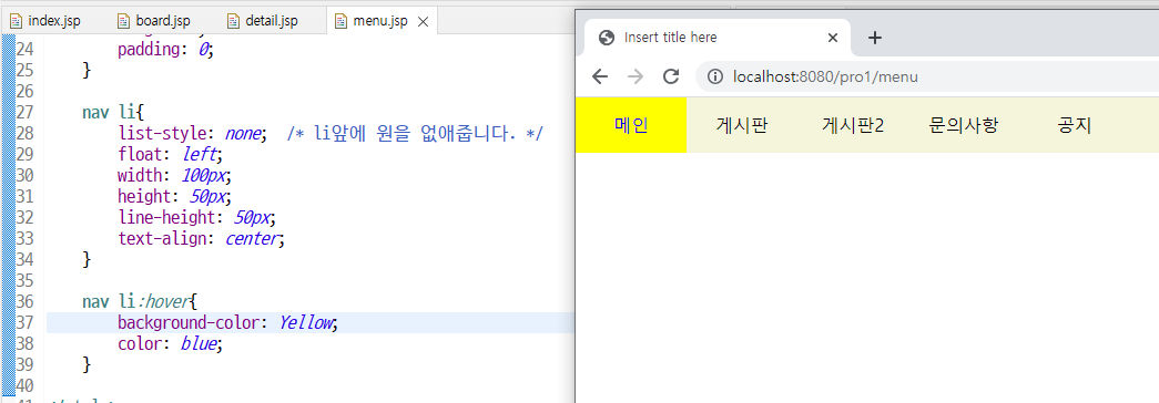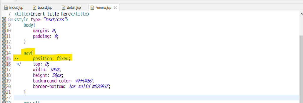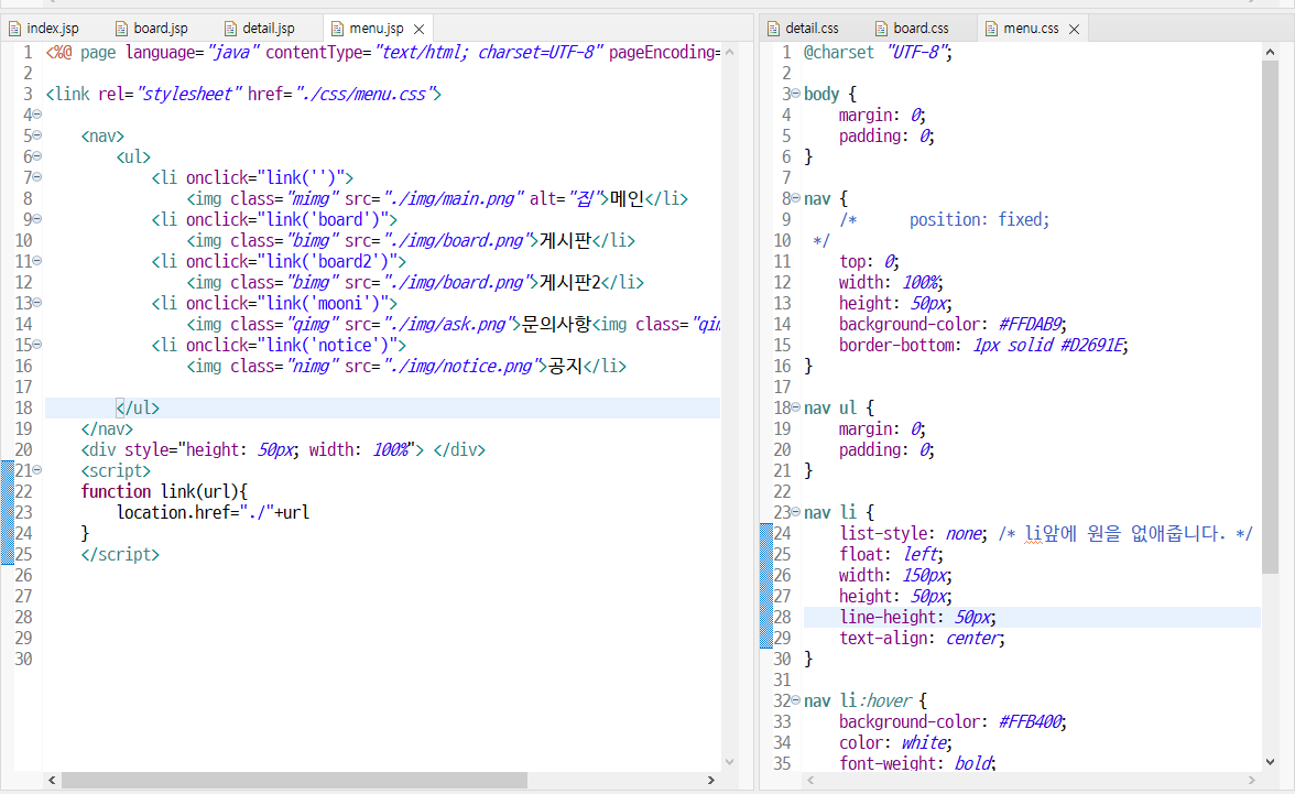 menu.jsp에 있던 스타일들을 css파일에 옮겨주기