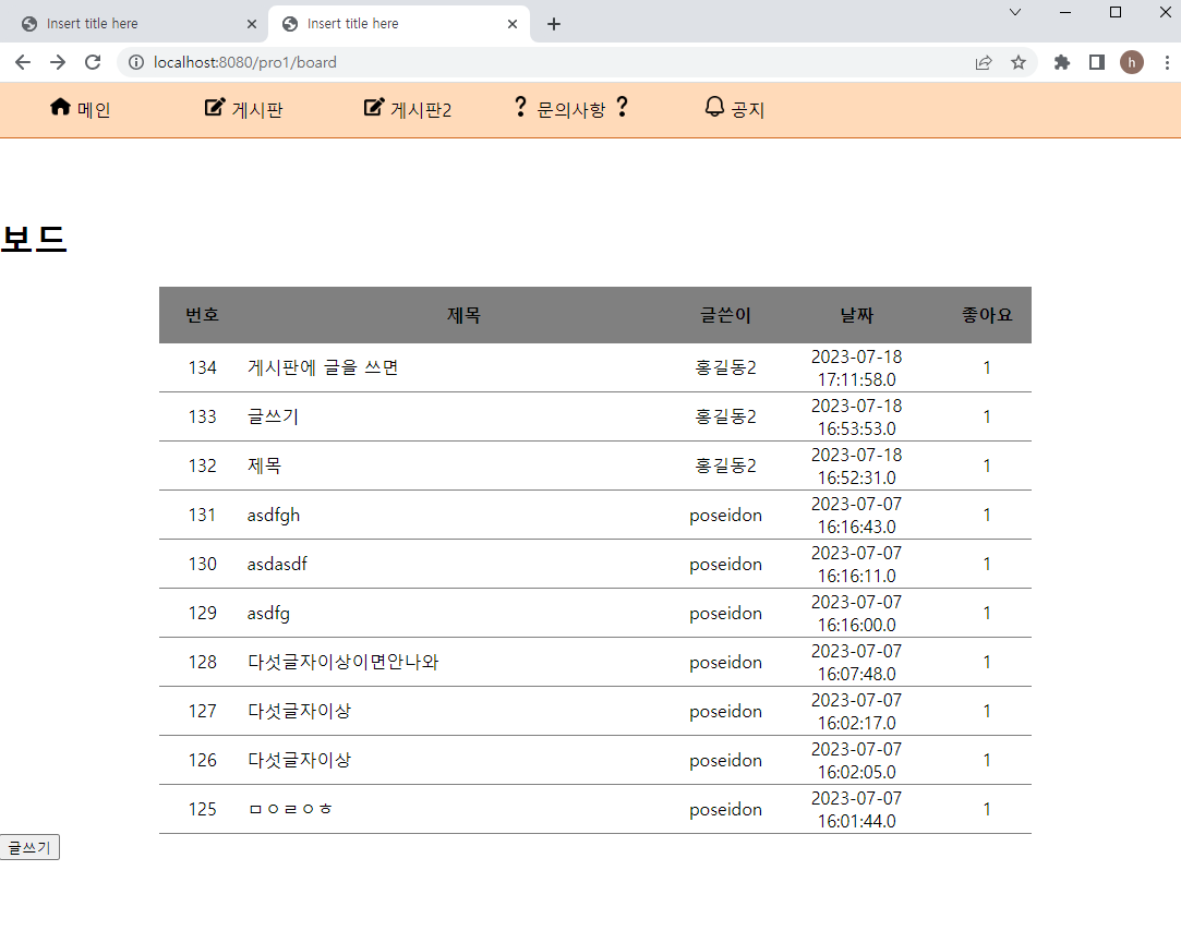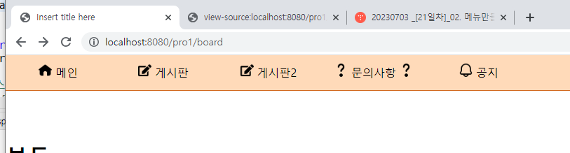 마찬가지로 게시판 누르면 board 페이지로 이동