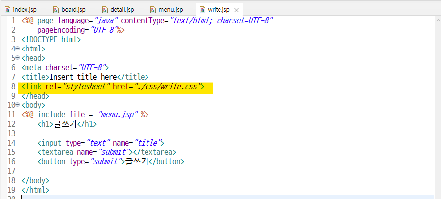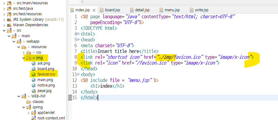 만들어진 링크는 jsp 파일 <head>태그 안에 넣어주면 연결됨!! (경로설정주의_ img폴더 추가*)