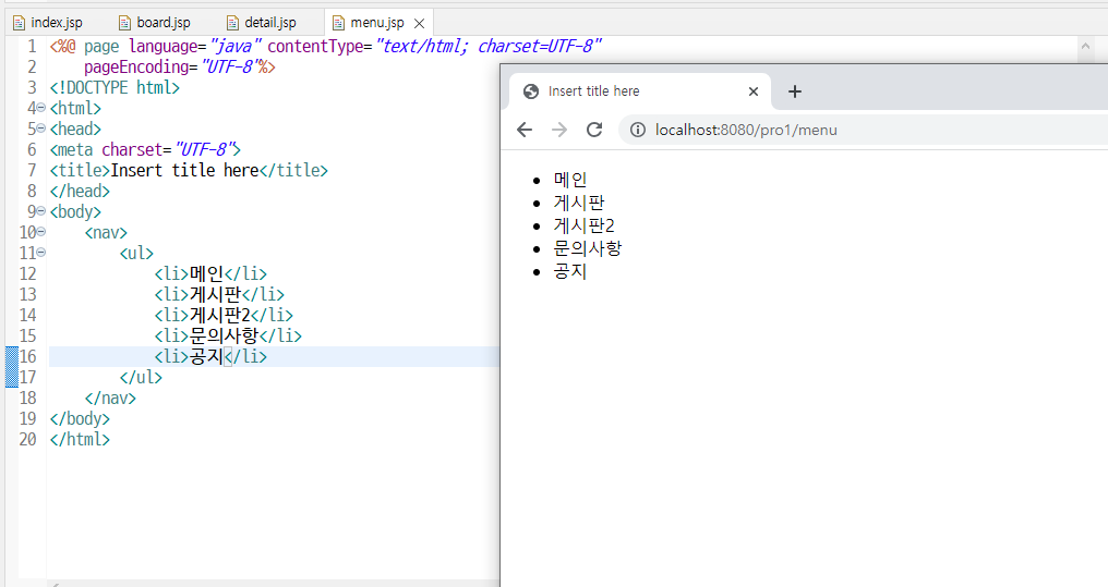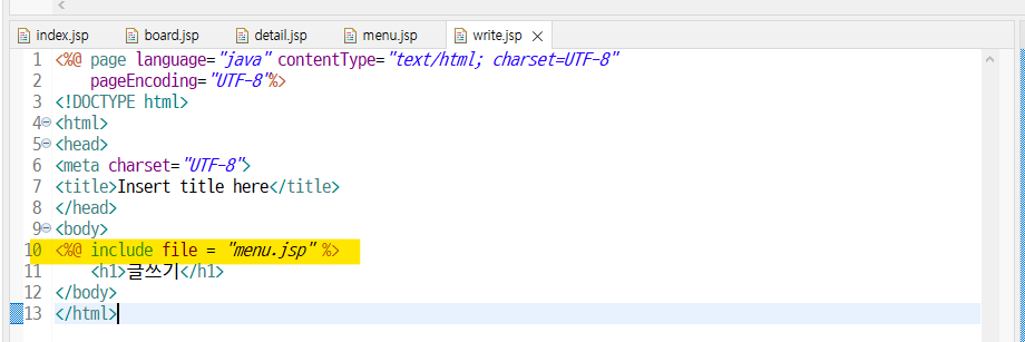 각 메뉴에 해당하는 넘어갈 페이지(jsp 파일) 생성