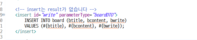 insert로 명령어 입력해줄거 (insert는 result가 없음 _ resultType이 없음) => parameterType만!
