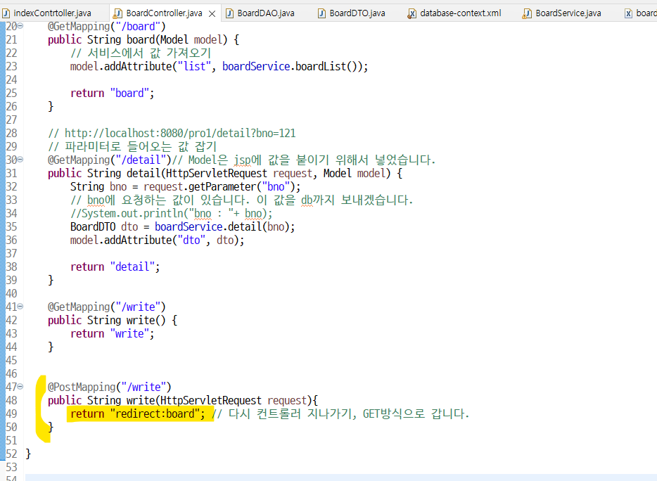 그리고 보드를 다시 읽을거야 (redirect:board)