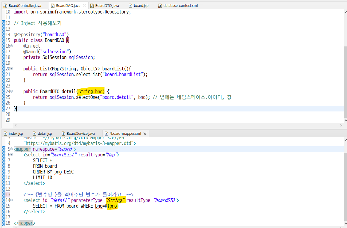 타입 & 변수명 맞춰주는거 중요 (String & bno)