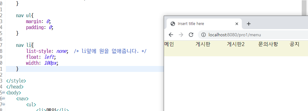 * 넓이 지정해주면 li 하나하나가 100px만큼의 넓이를 차지하게 됨