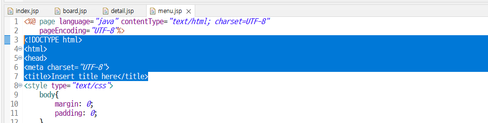 요만큼은 menu.jsp 에만 넣어주거나 요기에 넣지 않으려면