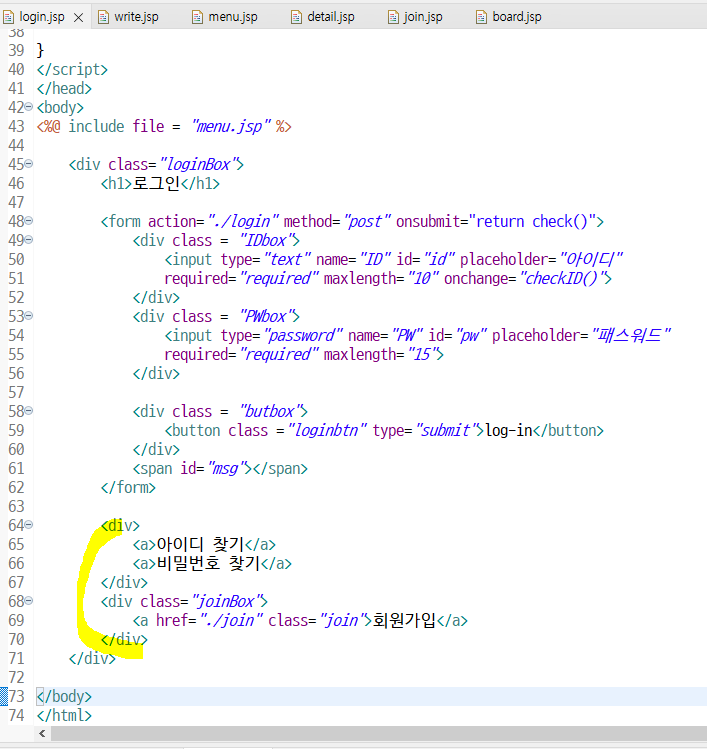 login.jsp 에서 form 바깥에다가 버튼생성
