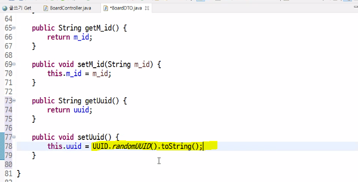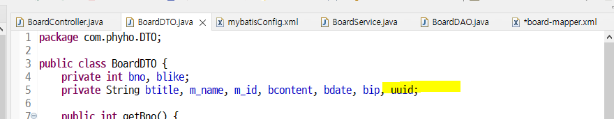 DTO에도 uuid 변수 추가하고 getter/setter 생성