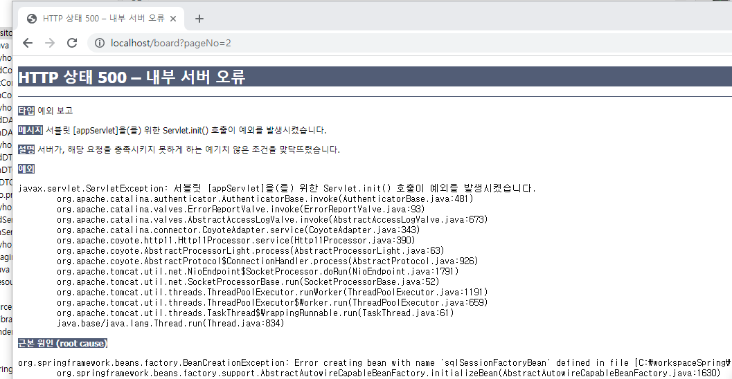 서버 재기동 해주면 아래 500번 오류가 뜬다