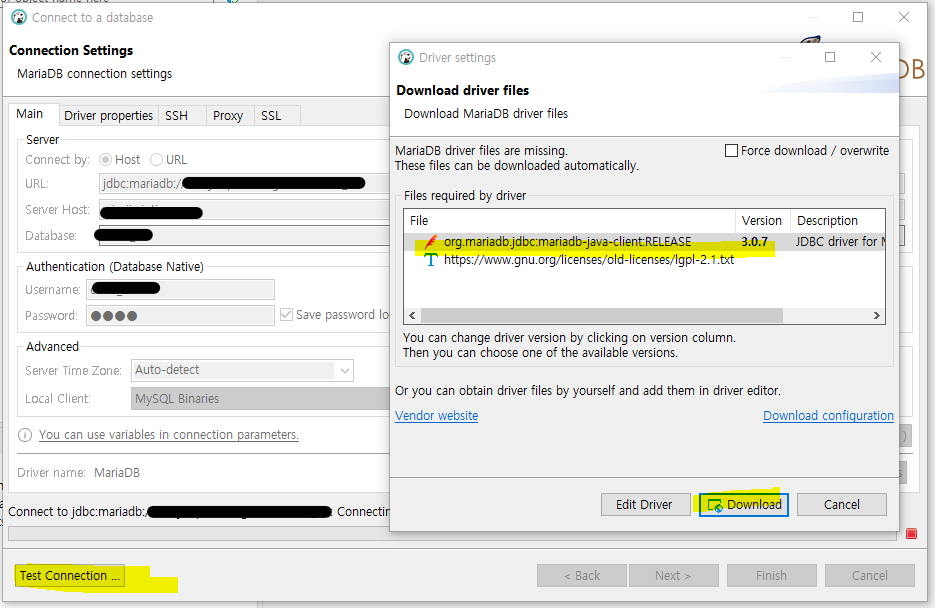마리아DB선택, 구로서버와 연결