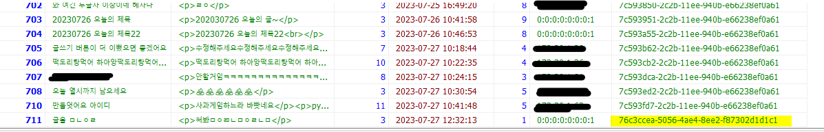 uuid 설정 이전에 썼던 글은 uuid 값이 안들어가고 null로 들어간다.