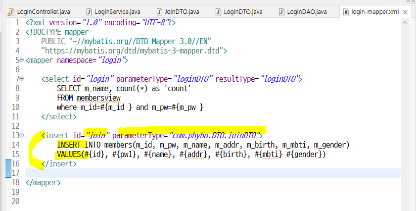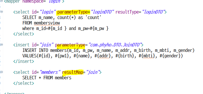 mapper에 members 정보들을 가져오는 쿼리문 작성