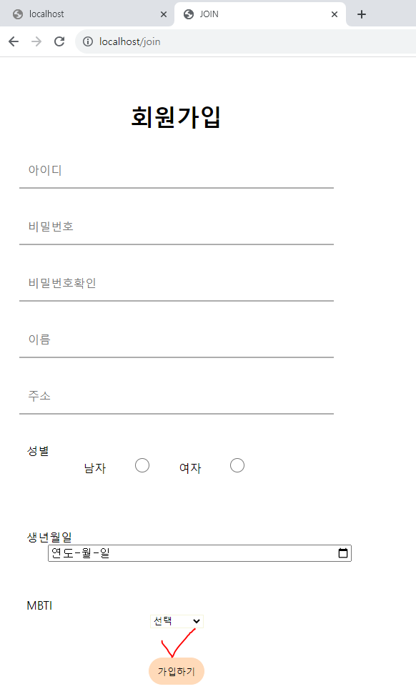 이제 가입하기 버튼 누르면 다시 join 페이지(현재페이지)로 돌아온다