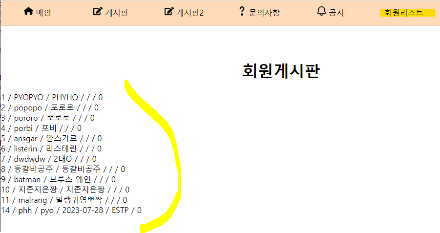 db에 저장된 모든 회원정보들을 아래처럼 회원리스트 페이지에 불러온다