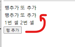 버튼을 누를때마다 2열짜리 행이 아래에 하나씩 추가된다.