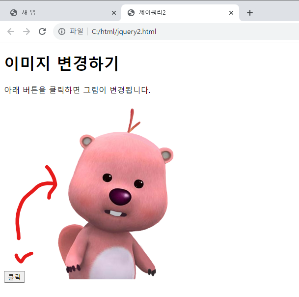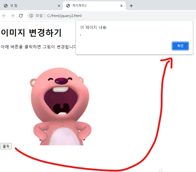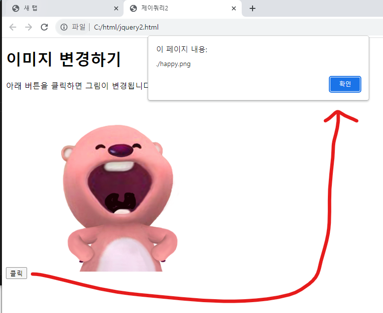 버튼을 누르면 이미지의 경로(src)가 뜬다.