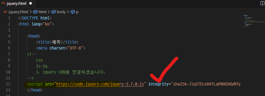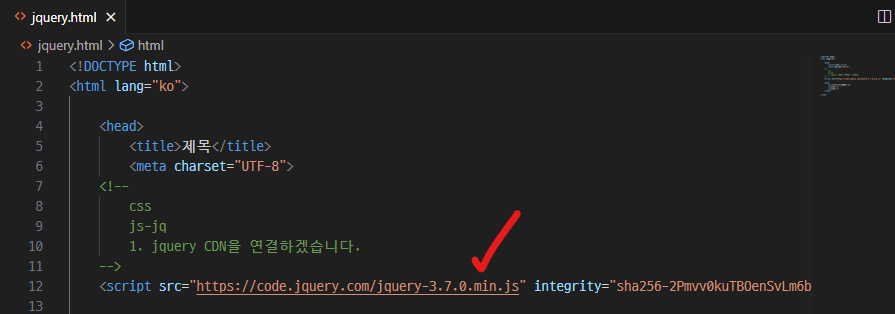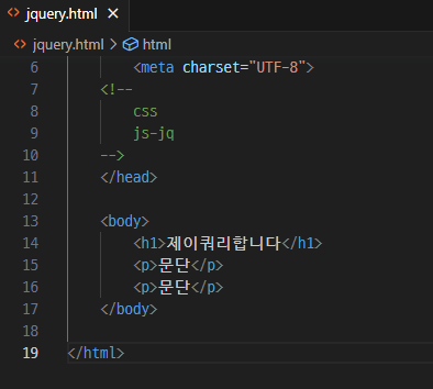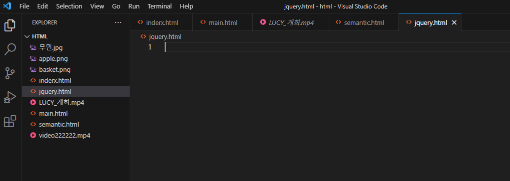 html폴더 열고 새파일(jquery.html) 만들기