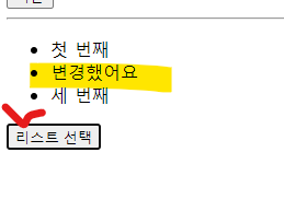 버튼 누르면 두번째 리스트의 text가 바뀐다.