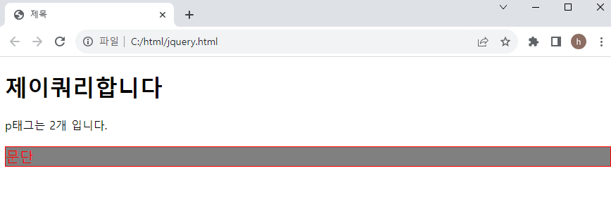 브라우저에서 p태그인 "문단"을 클릭하면 아래처럼 빨간색으로 변한다...간단쓰