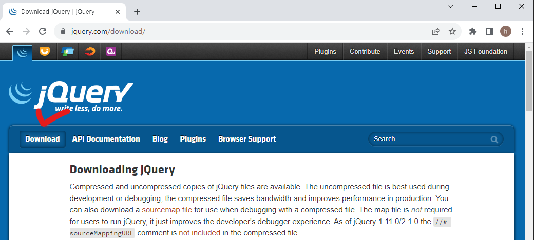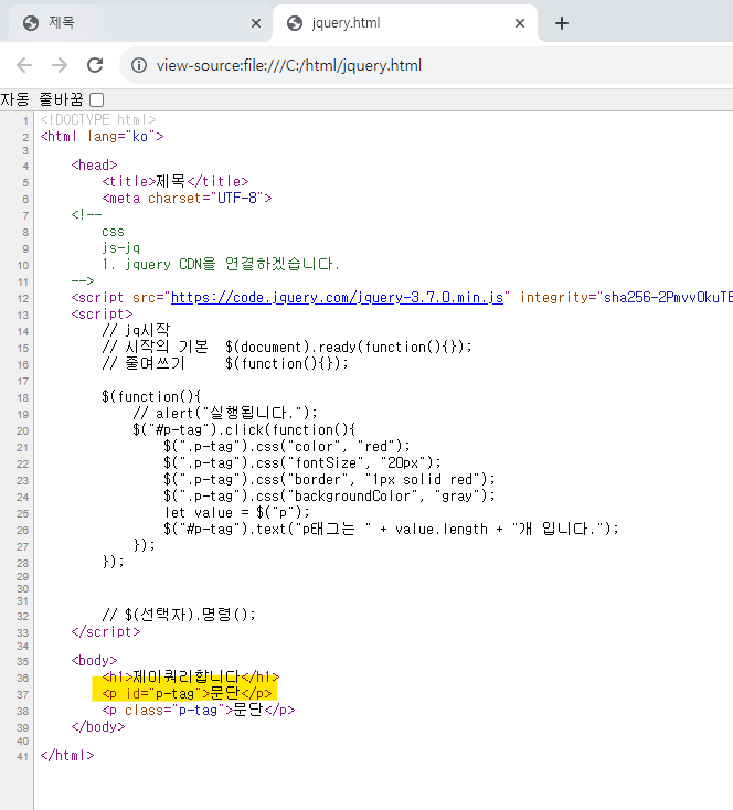 jquery는 이미 (함수들이)다 만들어져 있어서 가져다가 쓰기만 하면 됨