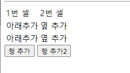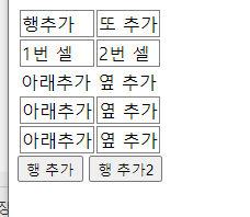 1행 2열 테이블 만들기, 행추가 btn5 버튼 만들기