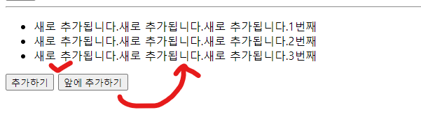 버튼을 누를때마다 li 앞에 "새로 추가됩니다." 문구가 출력