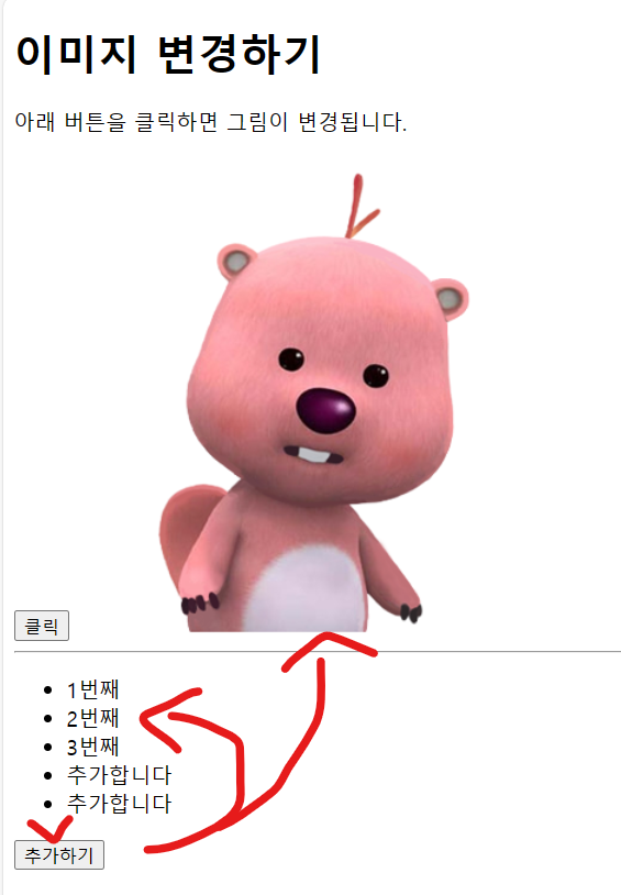 버튼을 누를때마다 "추가합니다" 라는 list가 추가된다.
