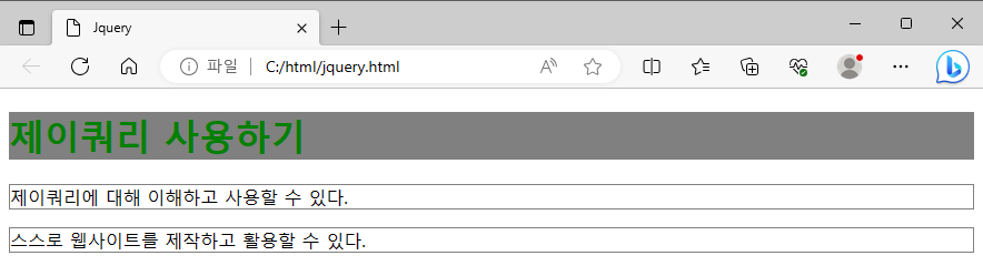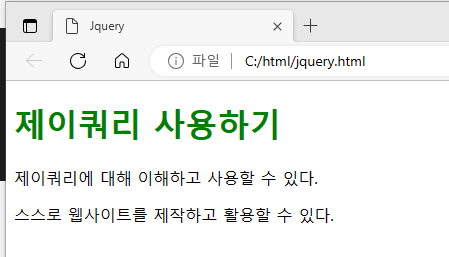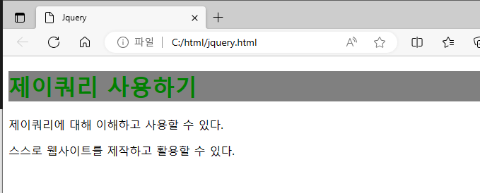 <p id="p1">제이쿼리에 대해 이해하고 사용할 수 있다.</p>