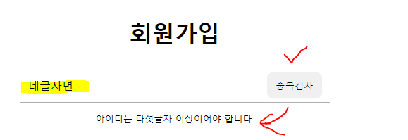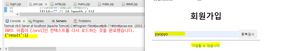 결과값이 0이면 "가입 가능 ~" 문구가 뜨게 해줌
