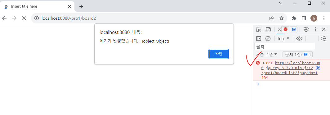 에러 코드 보면 boardList2의 pageNo=1 을 실행할 수 없다고 뜬다.