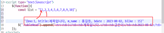 const 배열 list를 선언해주고 아래처럼 배열속성 하나하나에다가 한 줄을 넣어줄예정