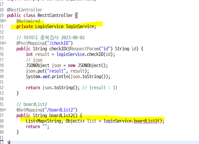 선언 해주고 로그인 컨트롤러에 있던 아이디 중복검사 부분 가져오자