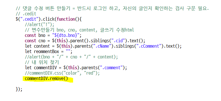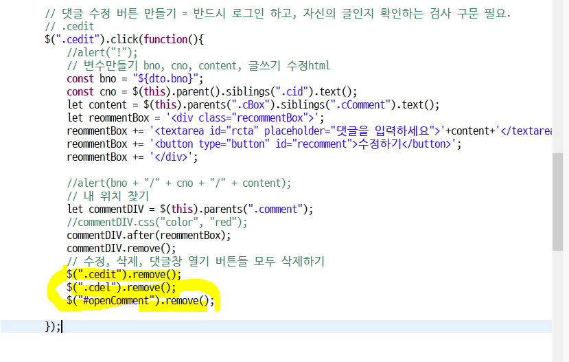 원래있던 댓글을 지워주면 댓글 수정기능 완성