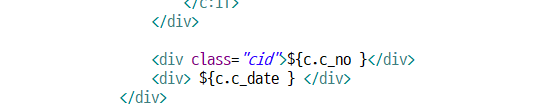 <div class="cid" > ${c.c_no} / ${c.c_date} </div> 요렇게 해줬었더니