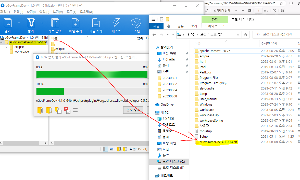 압축파일 풀어서 C드라이브에 넣기