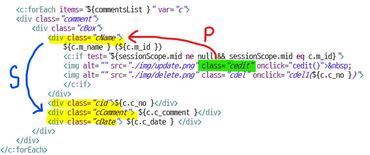 <div class="cComment"> ${c.c_comment }</div>