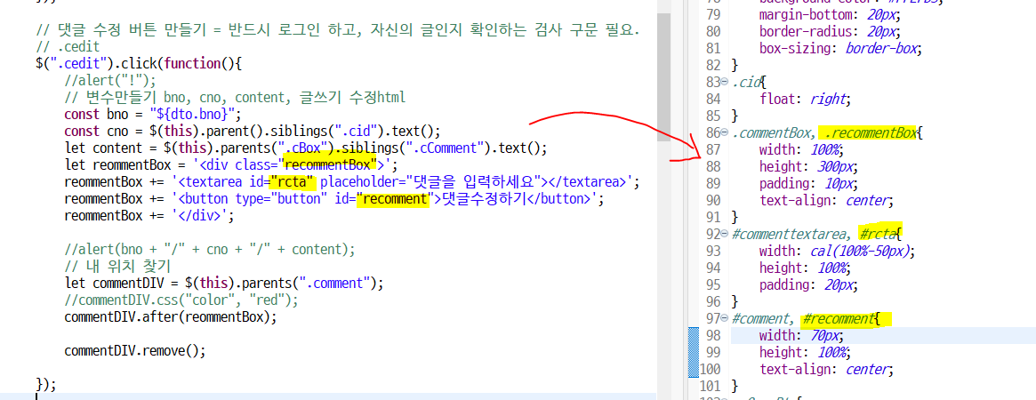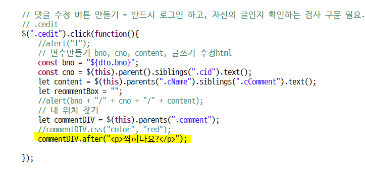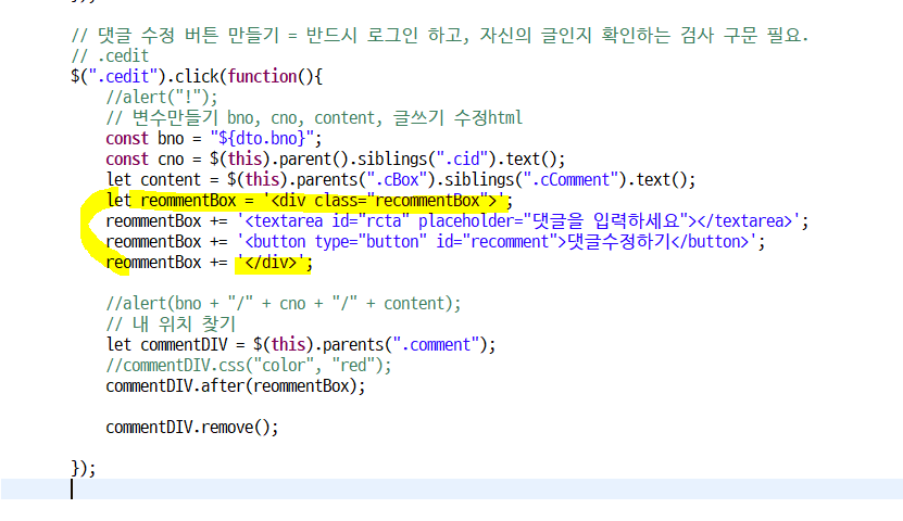 jquery 부분에서 새로운 댓글창 div를 만들어준다.