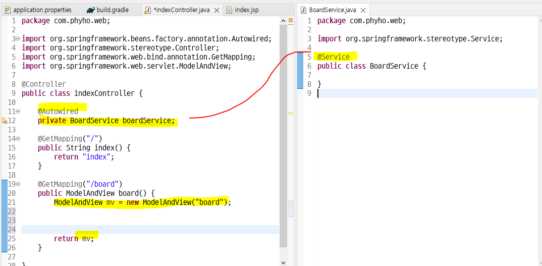 이제 컨트롤러에서 board로 값을 보내본다. (ModelAndView 에 값을 붙여서 jsp로 보낸다.)