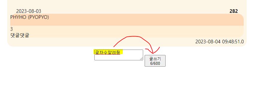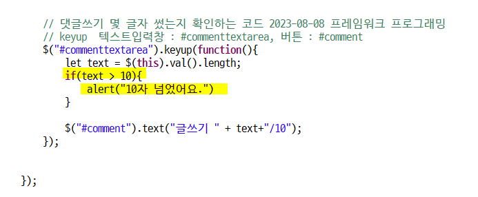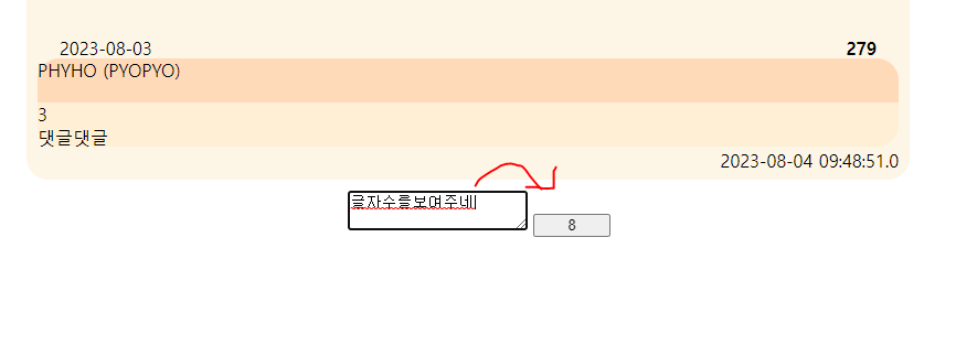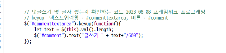 댓글쓰기 몇 글자 썼는지 확인하는 코드만들자