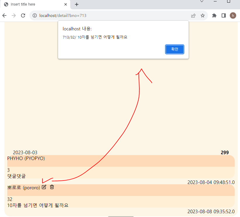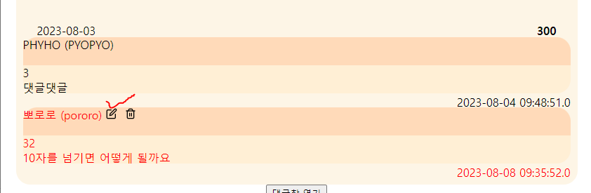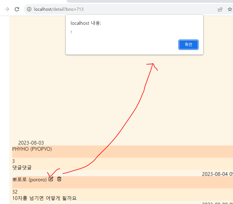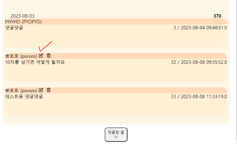 이제 댓글 수정해보면 잘된다.