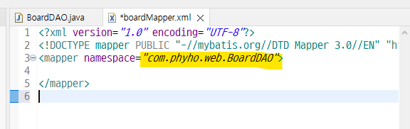 mapper 파일에 BoardDAO 경로설정 해준다.