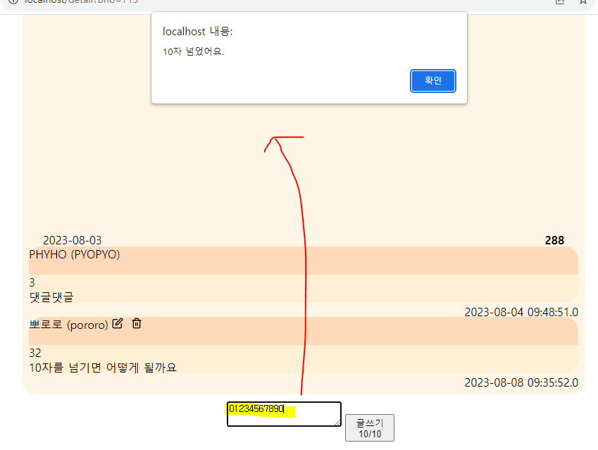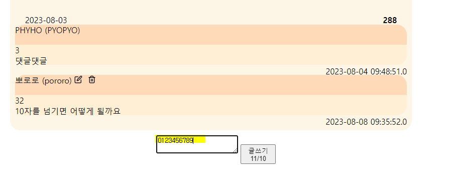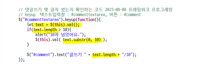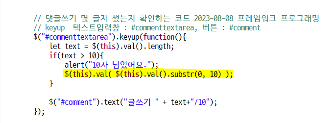 댓글창에 입력한 글자에서 10글자만 뽑아서 다시 댓글창의 값으로 넣어준다.