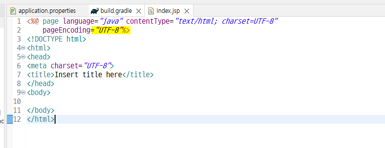 여기에서는 jsp 파일에 UTF-8 설정이 알아서 되어있다. 좋다.