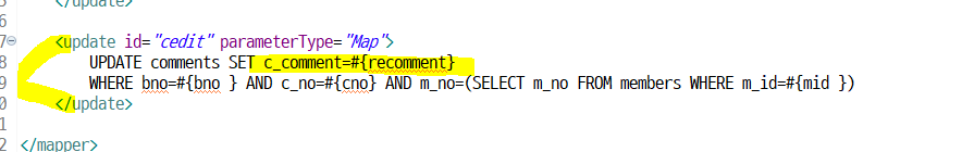 댓글을 수정한댓글(recomment)로 update 하는 쿼리문을 작성한다.