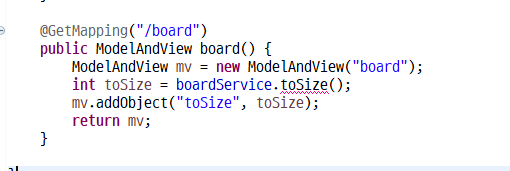 전체글수를 int 타입인 toSize라는 변수에 넣고 이 값을 mv에 넣어준다.