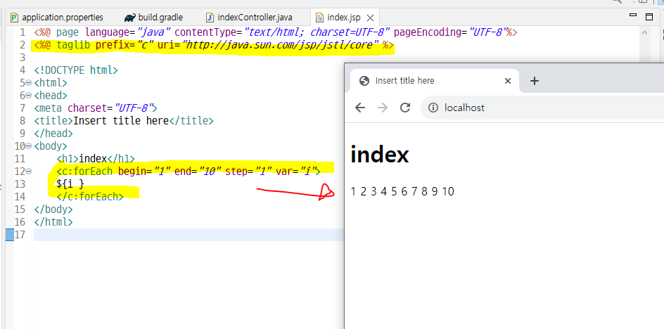 jstl 태그 선언해주고