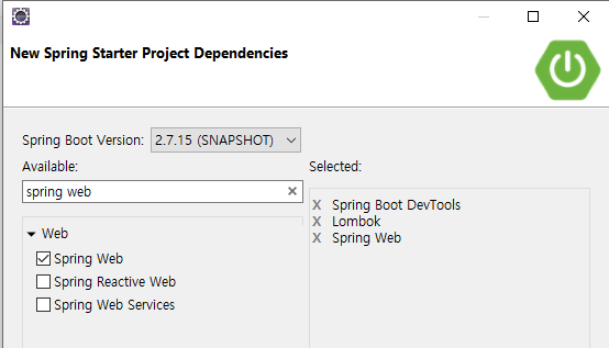 implementation 'org.springframework.boot:spring-boot-starter-web' //기본 starter web