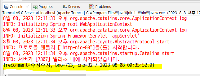 이제 보드컨트롤러에서 수정한 값(수정댓글)을 잡아보자