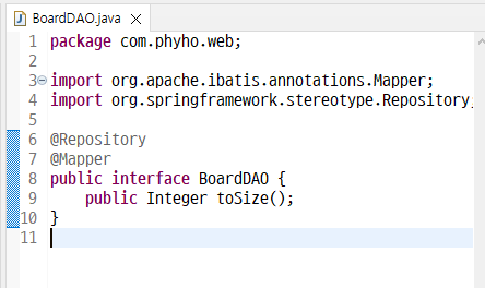 DAO에 선언해주는데 @Mapper 선언 하나더 해준다.